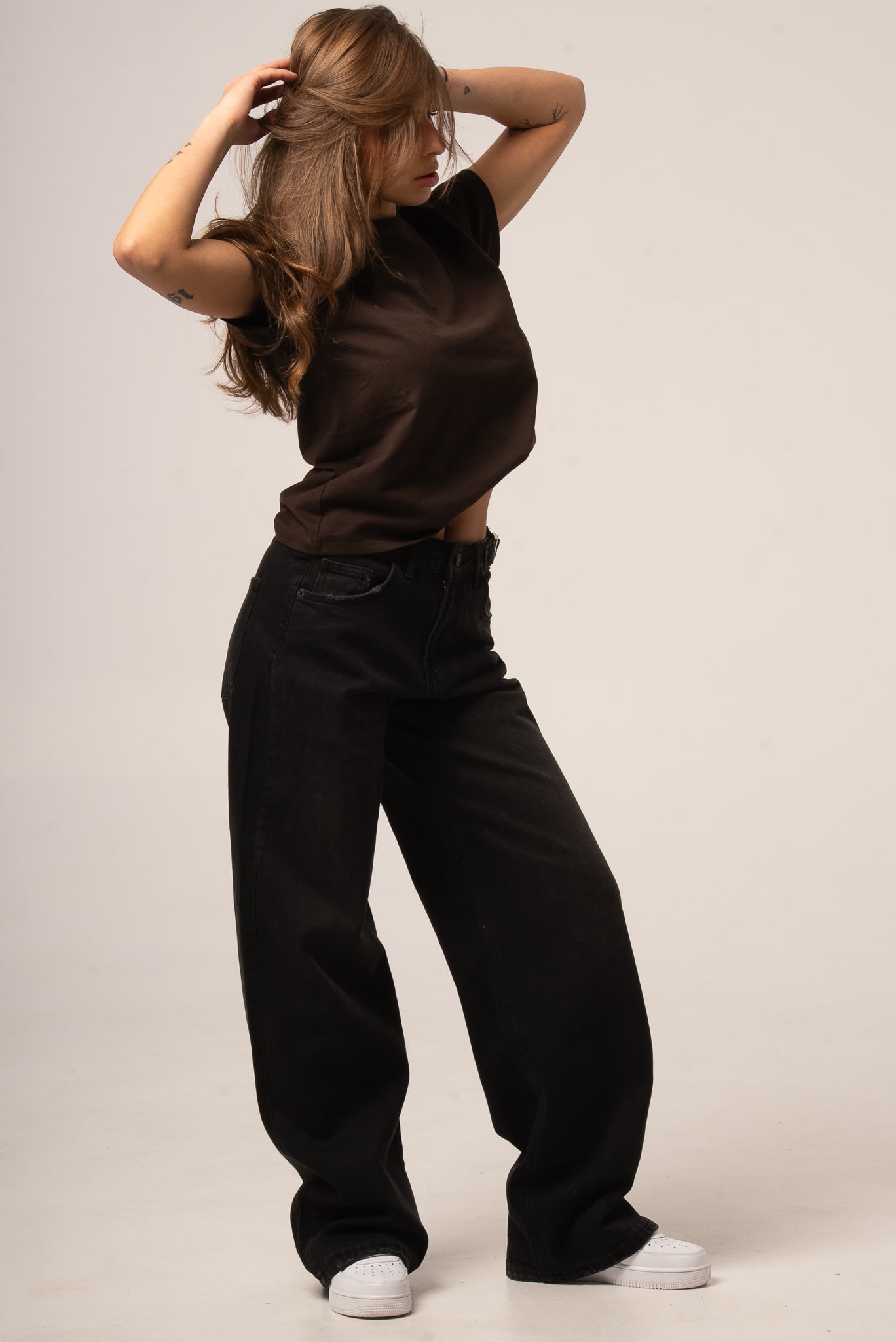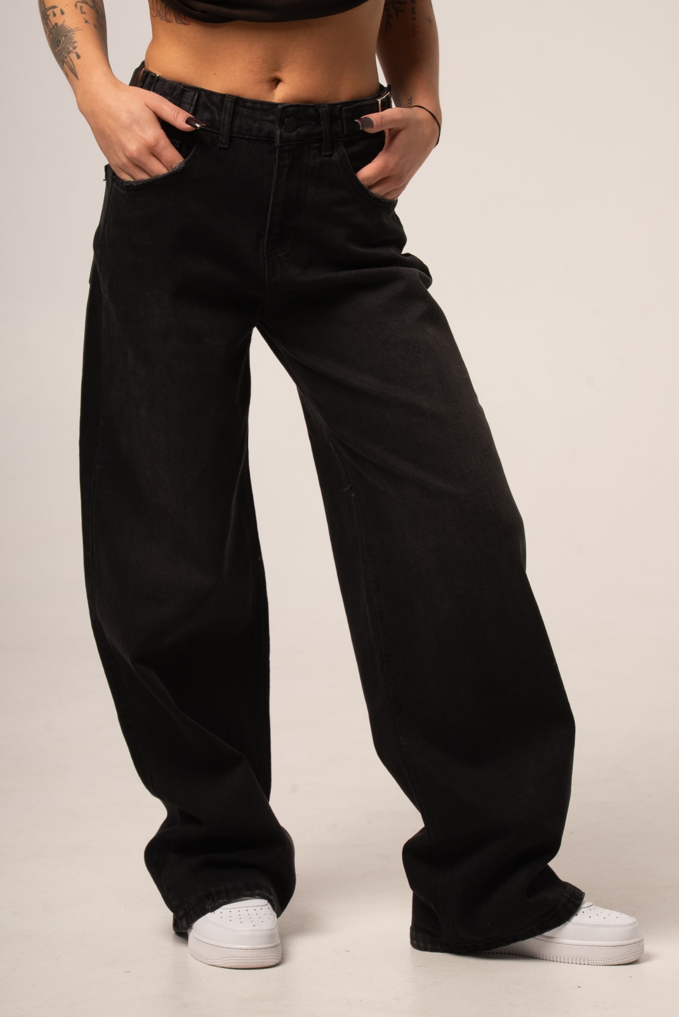 Czarne jeansy damskie o kroju baggy